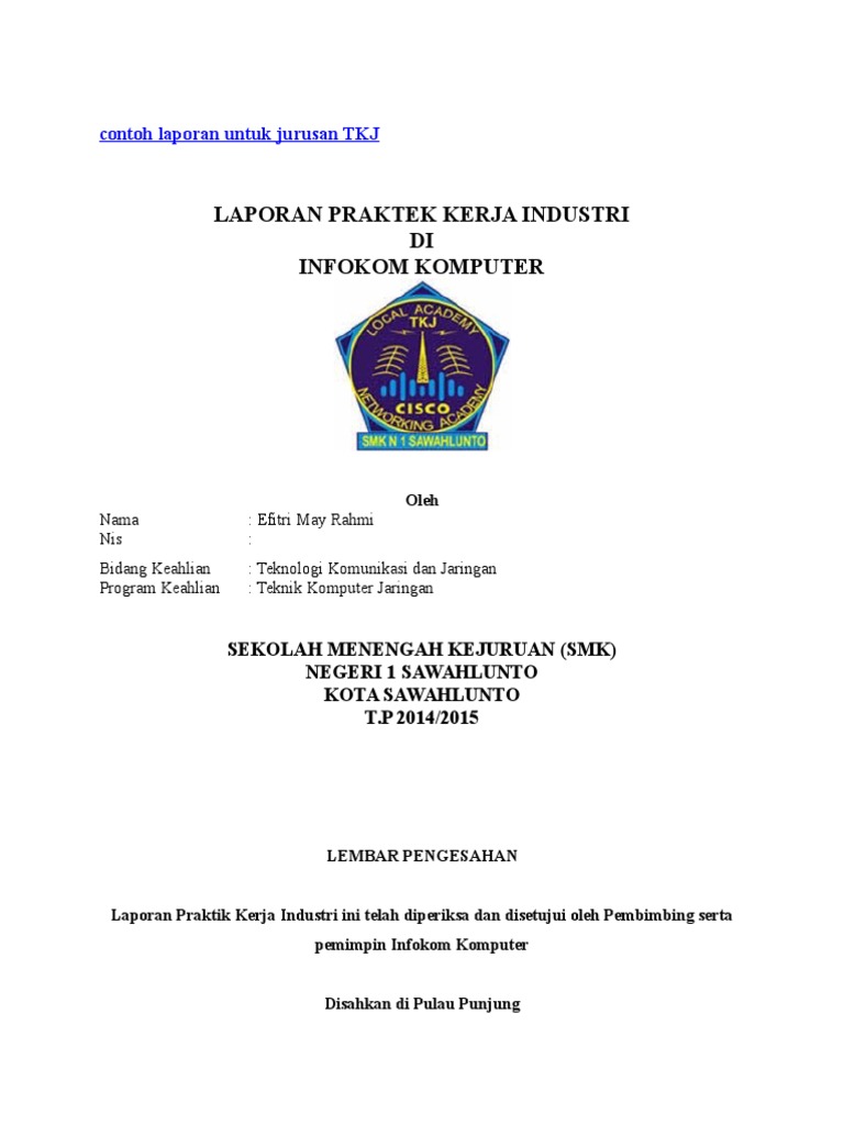 Contoh Laporan Praktek Kerja Industri Jurusan Tkj Kumpulan Contoh Laporan